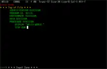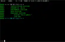 XEDIT is a visual editor for VM/CMS using block mode IBM 3270 terminals. (Line-mode terminals are also supported.) [1] [2]