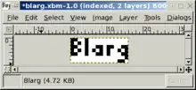 The following code displays the same blarg file in the XBM, XPM and PBM formats.