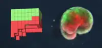 ![]() A xenobot design discovered in simulation (left) and the deployed organism (right) built from frog skin (green) and heart muscle (red) | |