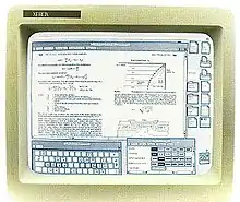 The Xerox Star system's concept owes much to the Xerox Alto, an experimental workstation designed by the Xerox Palo Alto Research Center (PARC). The first Alto became operational in 1972. The Alto had been strongly influenced by what its designers had seen previously with the NLS computer system at the Stanford Research Institute and PLATO at University of Illinois.[4][5] At first, only a few Altos had been built.[6] Although by 1979 nearly 1,000 Ethernet-linked Altos had been put into operation at Xerox and another 500 at collaborating universities and government offices,[7] it was never intended to be a commercial product.[8] Then in 1977,[9] Xerox started a development project which worked to incorporate the Alto innovations into a commercial product; their concept was an integrated document preparation system, centered on the expensive laser printing technology and targeted at large corporations and their trading partners. When the resulting Star system was announced in 1981,[7] the cost was about US$75,000 (equivalent to $251,000 in 2023) for a basic system, and US$16,000 (equivalent to $54,000 in 2023) for each added workstation. A base system includes an 8010 Star workstation, and an 8010 dedicated as a server (with RS232 I/O), and a floor-standing laser printer. The server software includes a File Server, a Print Server, and distributed services (Mail Server, Clearinghouse Name Server / Directory, and Authentication Server). Xerox Memorywriter typewriters connect to this system over Ethernet and send email, using the Memorywriter as a teletype.
