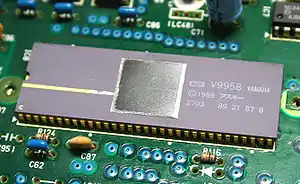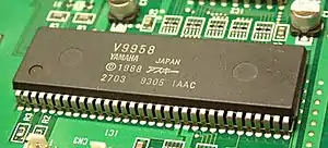 The Yamaha V9958[1][2][3] is a Video Display Processor used in the MSX2+[4] and MSX turbo R series of home computers, as the successor to the Yamaha V9938 used in the MSX2. The main new features are three graphical YJK[5][6][7] modes with up to 19268 colors and horizontal scrolling registers. The V9958 was not as widely adopted as the V9938.