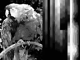 By using a monochrome monitor or black and white TV (or reducing the saturation settings of a colour TV), it is possible to take advantage of the differences in intensity over the Spectrum's colour range to generate a 15-shade greyscale image at 256x192 resolution.