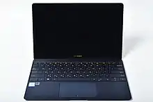 ZenBook is a family of ultrabooks – low-bulk laptop computers – produced by Asus. The first ZenBooks were released in October 2011, and the original range of products was amended and expanded during 2012. Models range from 12-inch laptops featuring power efficient components but lacking connectivity and having only integrated graphics processors, to 15-inch laptops with discrete graphics processing units and optical disc drives. Most (though not all) ZenBooks use Intel Core ultra-low-voltage processors and Nvidia GPUs when integrated graphics are not used. Asus introduced new models with touch screens to take advantage of Windows 8 after its release in late 2012. Most models drew comparisons to the MacBook Air. The ZenBook mainly competes against computers such as Acer's Aspire, Dell's Inspiron and XPS, HP's Pavilion, HP Stream and Envy, Lenovo's IdeaPad, Samsung's Sens and Toshiba's Satellite.