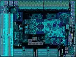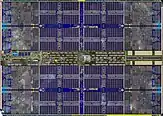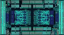 With Zen 2, each CPU chiplet houses 8 CPU cores, arranged in 2 core complexes (CCXs), each of 4 CPU cores. These chiplets are manufactured using TSMC's 7 nanometer MOSFET node and are about 74 to 80 mm2 in size.[21] The chiplet has about 3.8 billion transistors, while the 12 nm I/O die (IOD) is ~125 mm2 and has 2.09 billion transistors.[23] The amount of L3 cache has been doubled to 32 MB, with each CCX in the chiplet now having access to 16 MB of L3 compared to the 8 MB of Zen and Zen+.[24] AVX2 performance is greatly improved by an increase in execution unit width from 128-bit to 256-bit.[25] There are multiple variants of the I/O die: one manufactured on GlobalFoundries 14 nanometer process, and another manufactured using the same company's 12 nanometer process. The 14 nanometer dies have more features and are used for the EPYC Rome processors, whereas the 12 nm versions are used for consumer processors.[21] Both processes have similar feature sizes, so their transistor density is also similar.[26]
