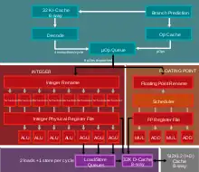 - Doubled width of the execution units and load store units (from 128-bit to 256-bit) in the floating point coprocessor and significant further throughput enhancements in the multiplication execution unit. This allows the FPU to perform single-cycle AVX2 calculations.[32]