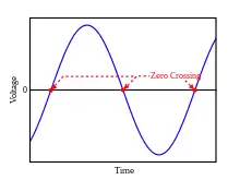 In alternating current, the zero-crossing is the instantaneous point at which there is no voltage present. In a sine wave or other simple waveform, this normally occurs twice during each cycle. It is a device for detecting the point where the voltage crosses zero in either direction.