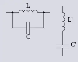 For a band-stop filter section, Z is a shunt resonant circuit and Z' is a series resonant circuit: