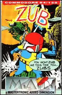 Zub is a 1986 platform video game designed by Ste and John Pickford, developed by Binary Design, and published by Mastertronic for the Amstrad CPC, Commodore 64 and ZX Spectrum. The game has the player control Zub, who has to travel to different planets to retrieve the Green Eyeball of Zub. A parody of the game Light Force, called Lightfarce, was added in as an easter egg. The music on all computers was composed by David Whittaker.