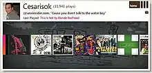 The central component of Social was the Zune Card. It was a Flash-based widget that could be embedded on other sites and social networking pages (Myspace, Facebook, etc.). It showcased the user's most recently played songs, their most played artists and number of times that artist had been played, and a user-selected list of favorite songs. Clicking a song, artist, or album would bring up the respective page on the Social website. Select songs had an option to preview a 30-second clip, and users could download the song via Zune Marketplace, suggest the song to a friend, or add it as one of their favorites.